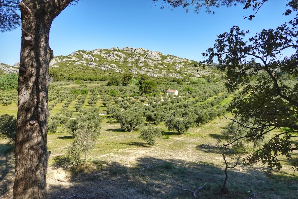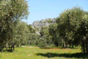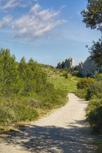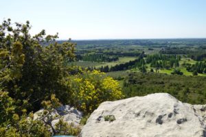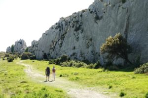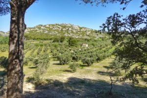 In Eygalières ist provencalischer Wochenmarkt. Parkplätze gibt’s genug. Jede Menge Leute schlendern durch die Straßen und an den Ständen vorbei. Wir kaufen Paella für später und starten unsere Wanderung. Aus einem Alpillesführer machen wir eine Variante der Route 12.