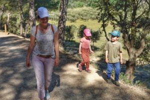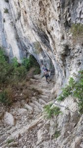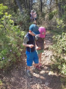 Es geht felsig bergauf, dann wieder runter, man muss schon sehr auf seine Füße und noch mehr auf die Kinder achten.
