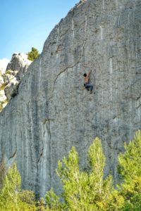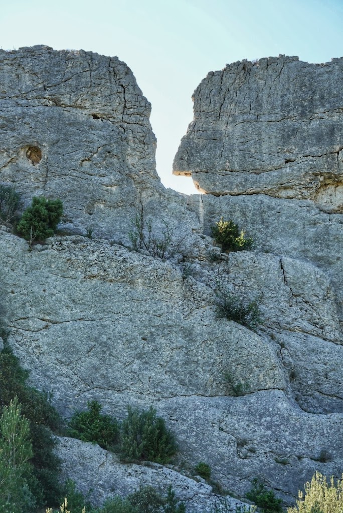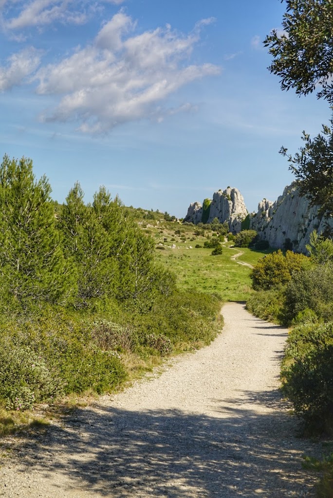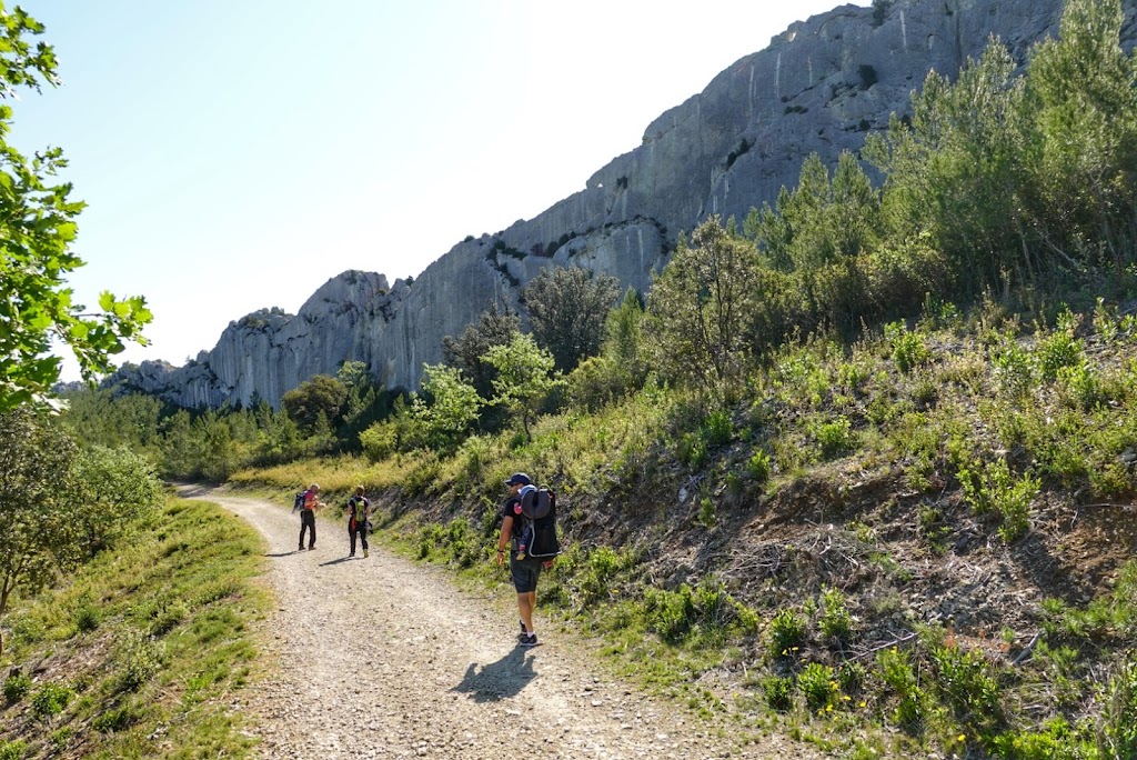 Wir fahren ein paar Kilometer durch Mouries bis zum Parkplatz für Kletterer in der Nähe der Golfanlage Servanes.