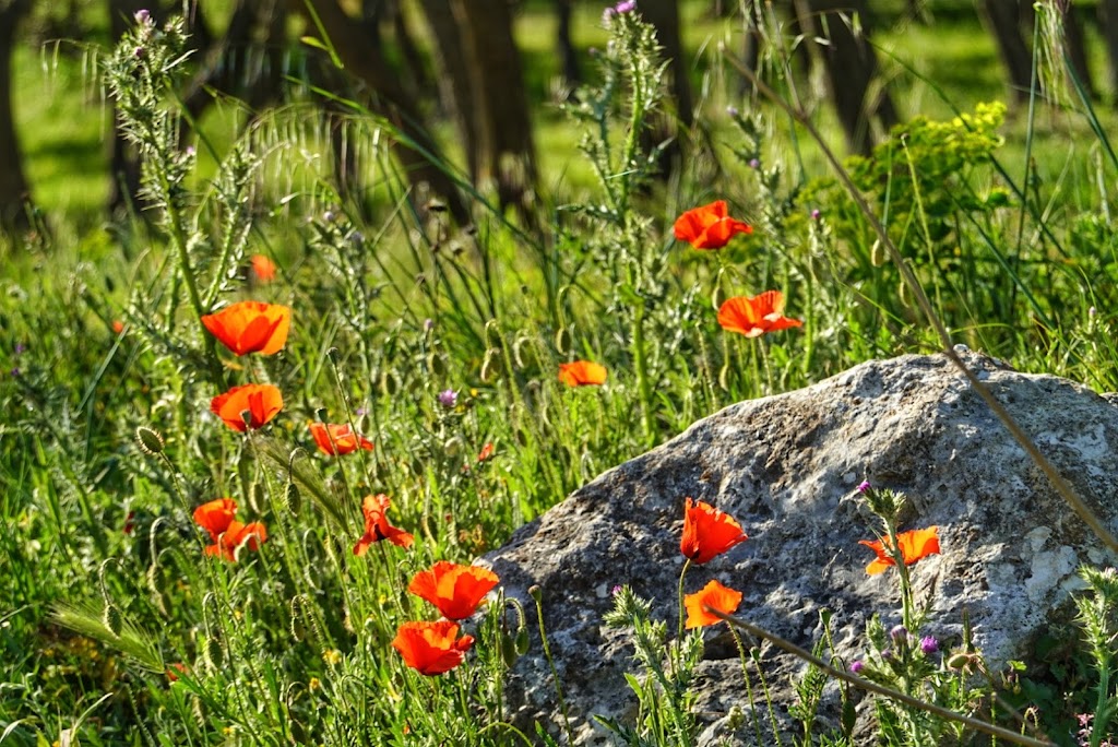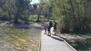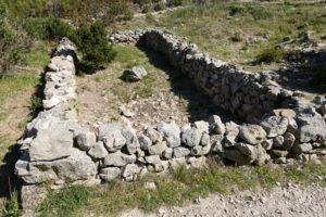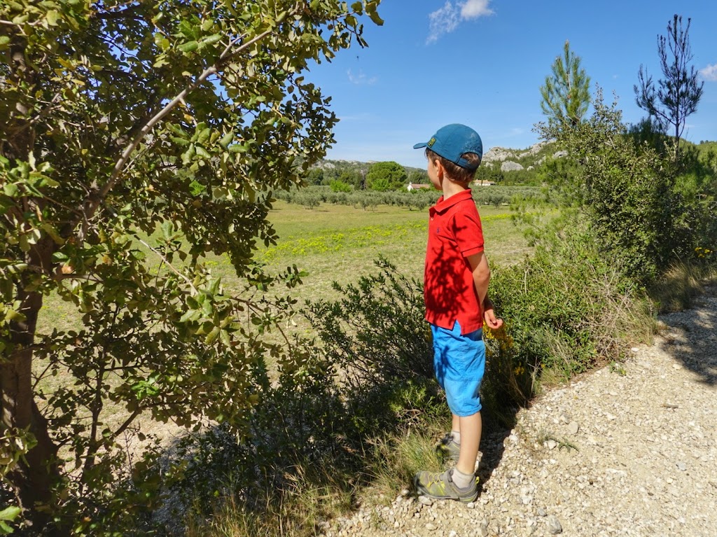 An Les Antiques spielen wir Detektiv, entdecken ein Stück der Via Domitia, Ira wandert derweil an der Hand herum und bestimmt die Richtung. Lynn geht außen rum zurück zum See und holt das Auto.