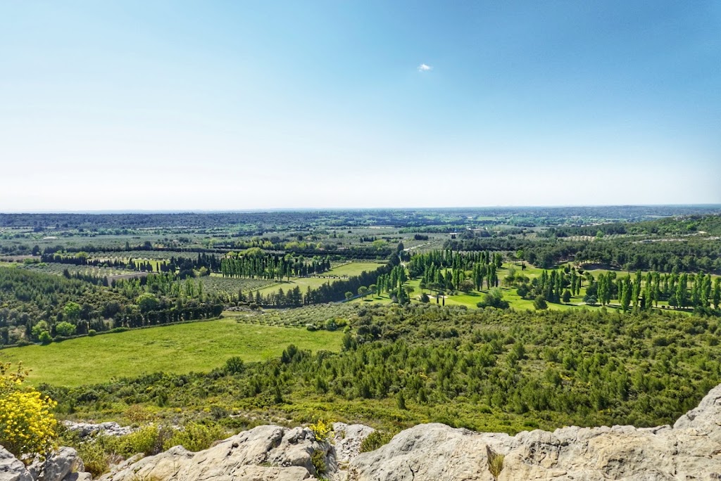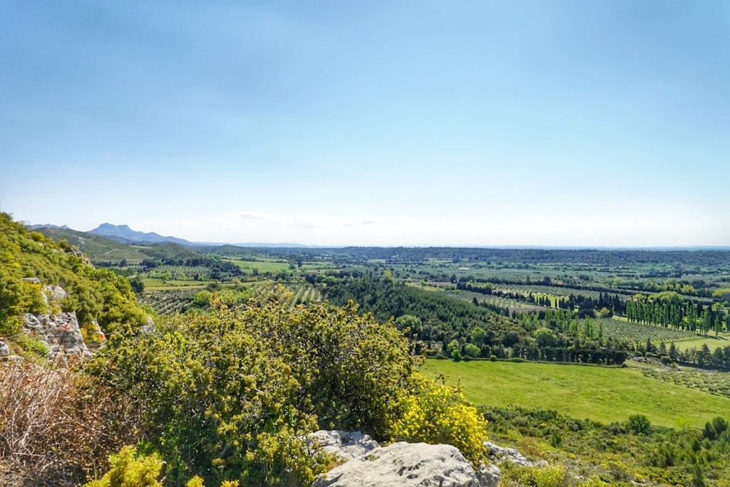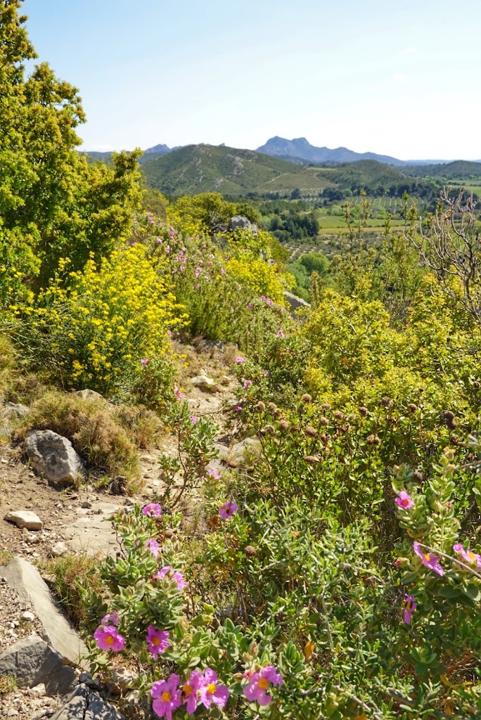 Ein paar Meter weiter ein tolles Panorama: die Hügelkette der Alpilles, dahinter Luberon und St. Victoire, am Meer die Raffinerien von Fos. Rundherum blüht und duftet die Garrigue.