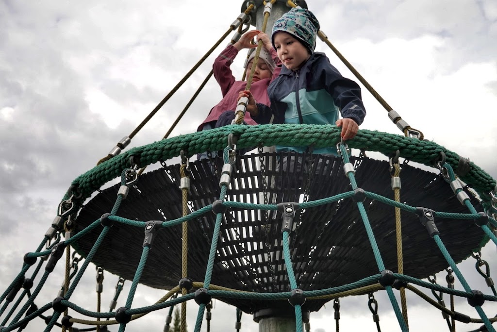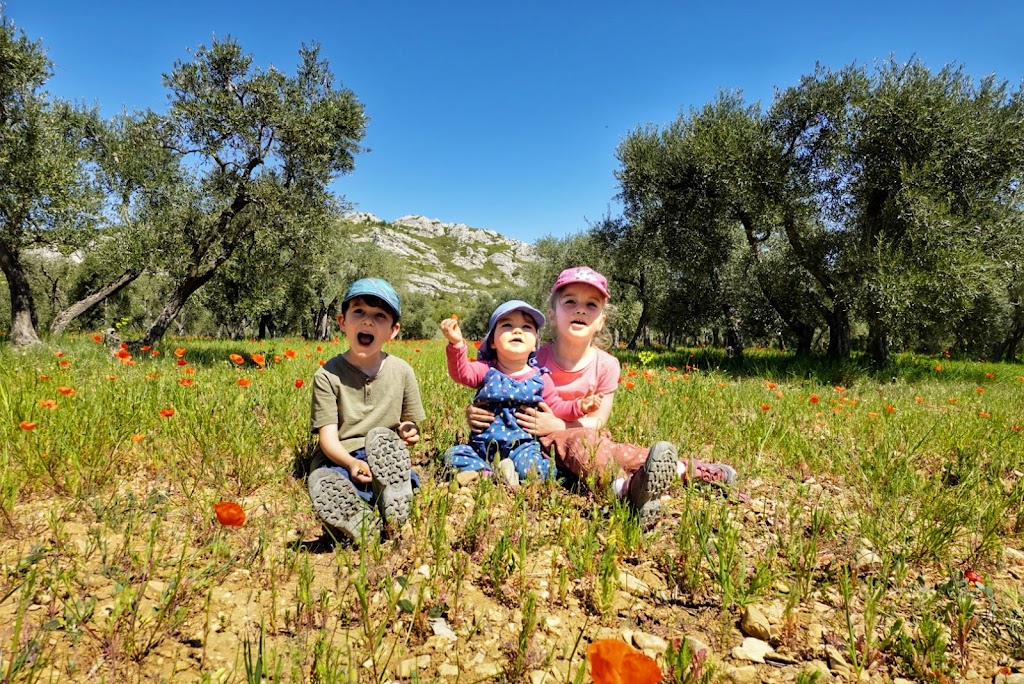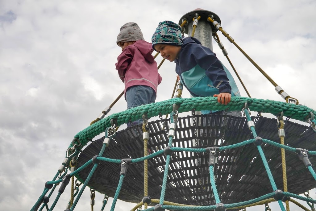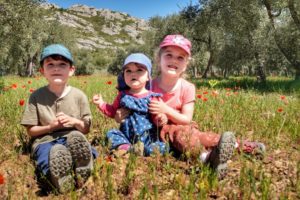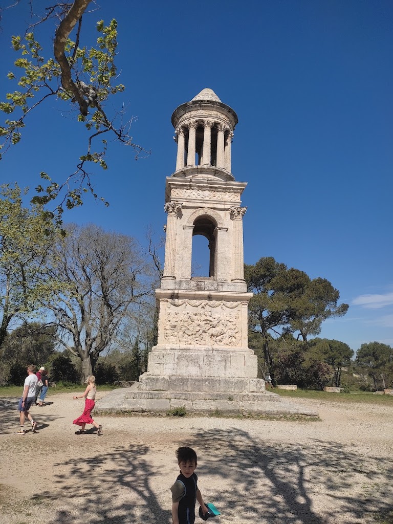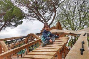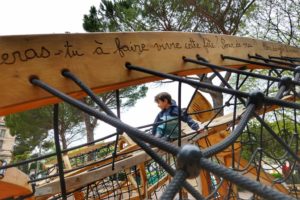 Bevor es wieder regnet, fahren wir nach St. Remy. Dort entdecken wir einen sehr schönen Spielplatz, der Mios und Avas Kletterkünste endlich mal herausfordert.