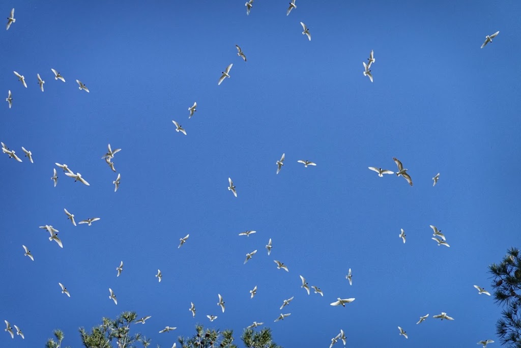 Draußen im Garten trällert eine Nachtigall und oben vom Himmel hört man die nach Norden ziehenden Schwarzkopf-Möwen.