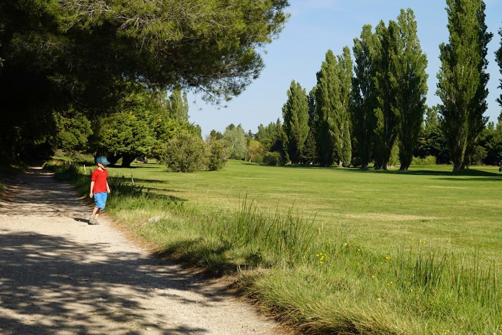 In der Sonne ist es warm, Ava kann bzw will nicht mehr, das Wasser geht zu Neige, deshalb gehen wir den etwas kürzeren Weg am Golfplatz und Kanal entlang zurück zum Auto.