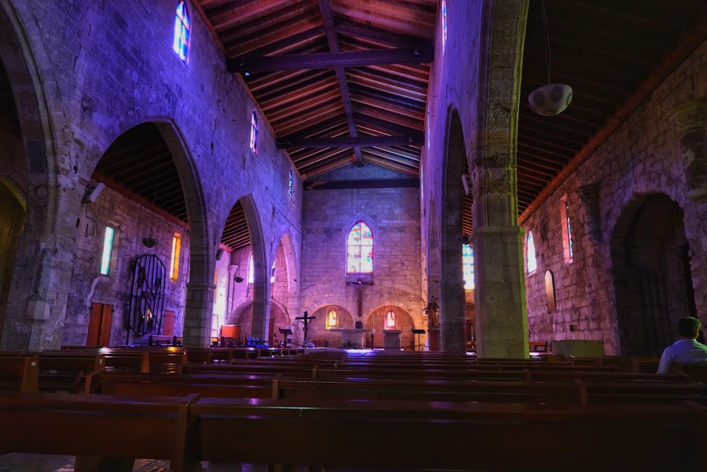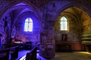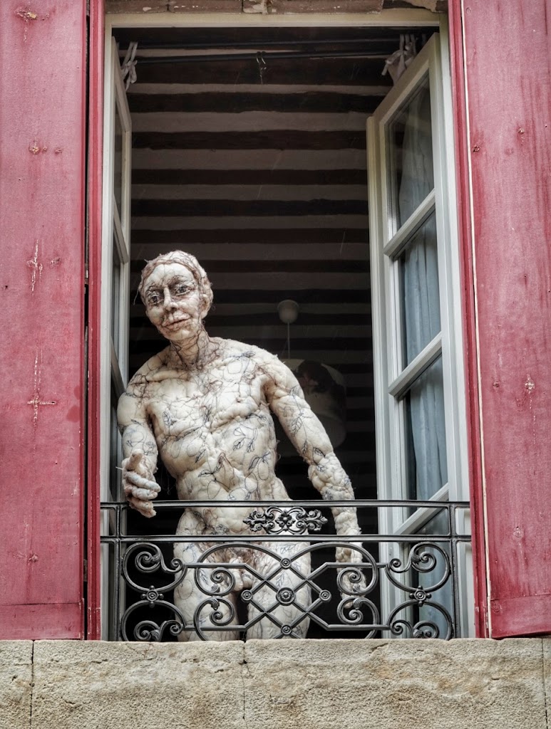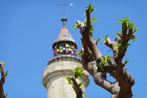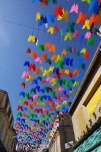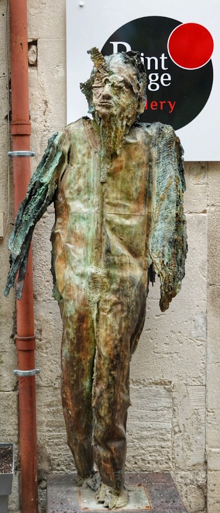 Wir gehen durch den Ort zur Place St. Louis und schauen kurz in die Kirche Notre-Dame-des-Sablons, die mit ihren bunten Fenstern von Vialla in sehr schönen Farben leuchtet. Fast alle Restaurantplätze sind besetzt, es herrscht ein ziemliches Gedränge.