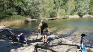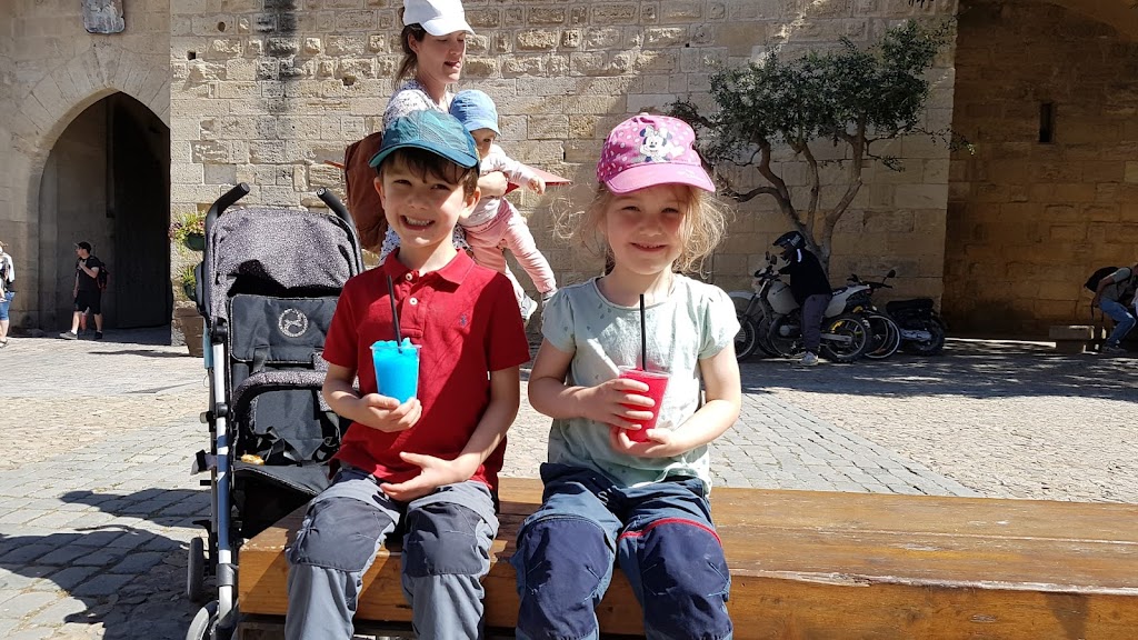 Lynn und David fahren einkaufen. Wir gehen mit den Kindern derweil zur Ölmühle, wo ich verschiedene Olivenöle probiere und zwei Dosen kaufe. Dazu noch Tapenade in schwarz und grün.