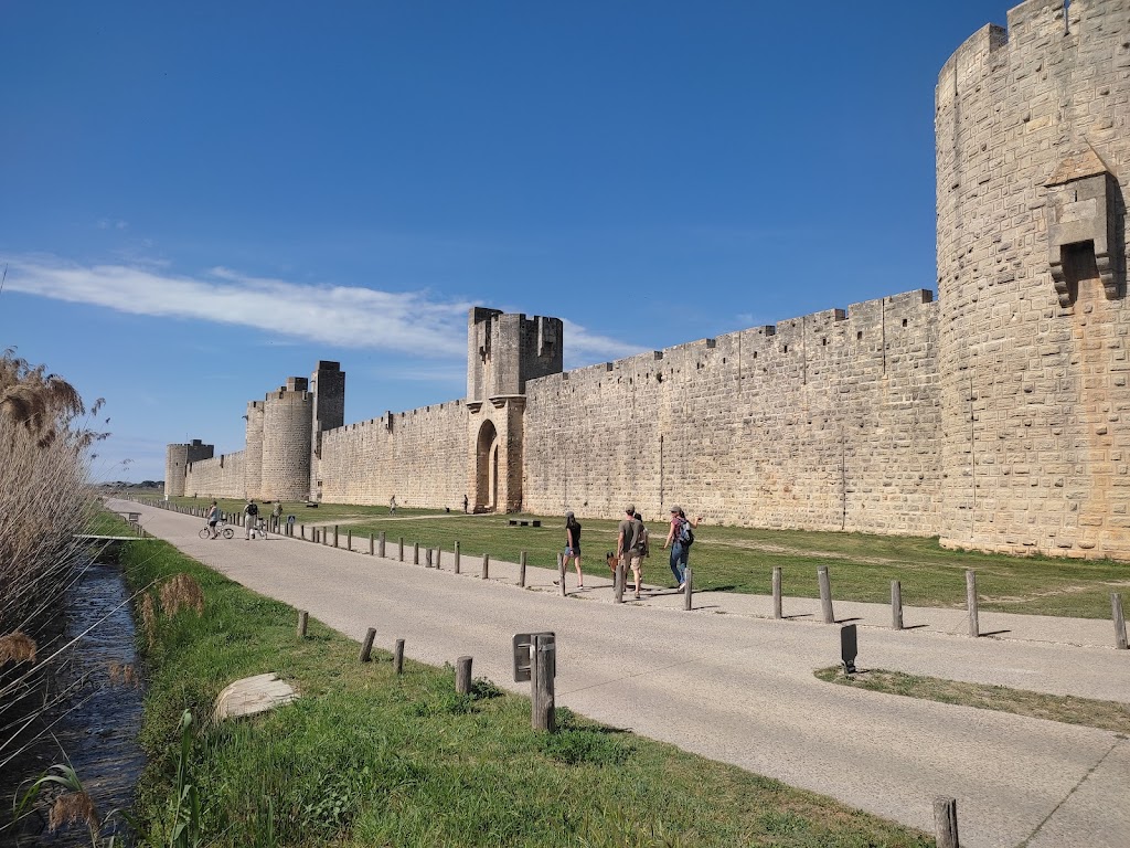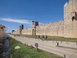 Wir fahren zunächst nach Aigues-Mortes. Es herrscht Verkehr wie in der Hochsaison. Kaum Parkplätze frei, der Ort voller Menschen.