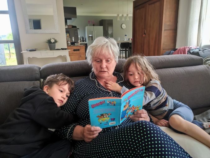 Nach dem Frühstück liest Oma aus dem ausgeliehenen Buch vor.