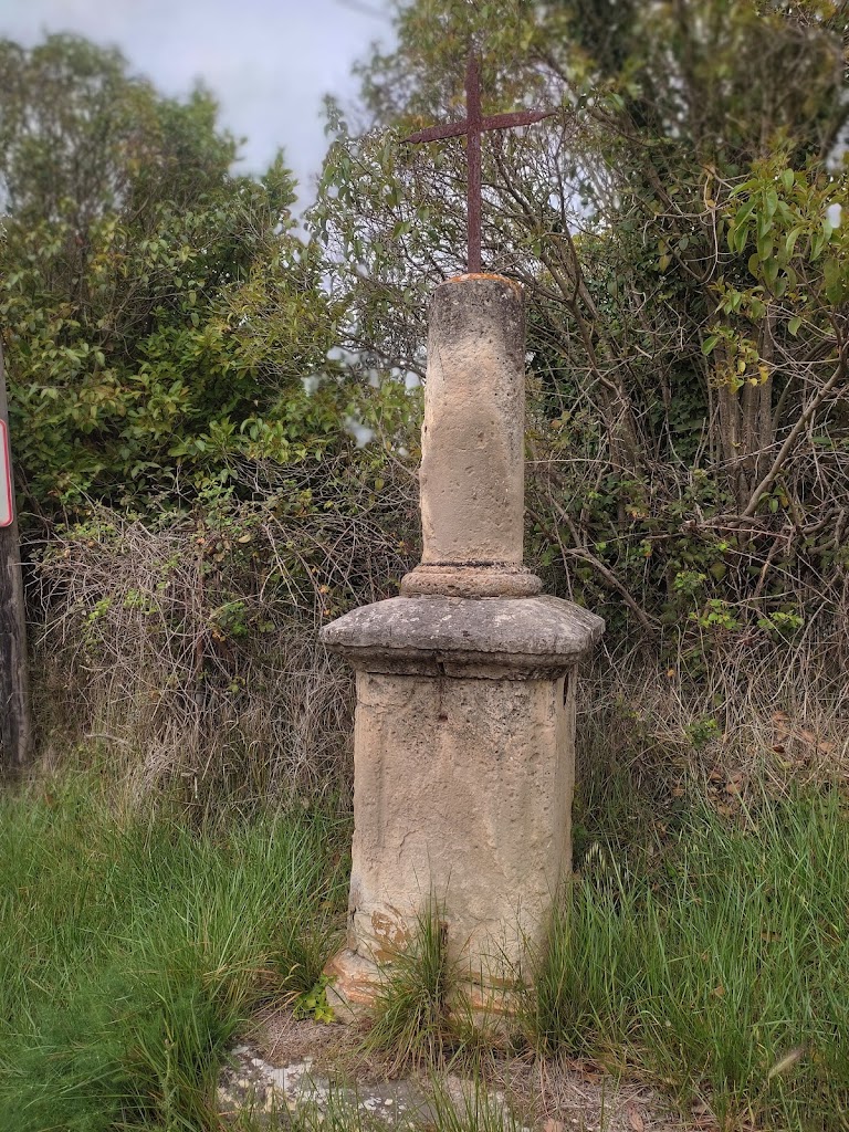 Zurück geht’s ab jetzt bequemer über Forst- und Wanderwege zunächst unter einer Hochspannungsleitung hinab, dann durch lichten Wald, vorbei an Weinfeldern zur Chapelle St. Sixte. Leider wg Renovierung komplett eingepackt.
