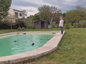 Weiter am Bäcker vorbei, durch den Ort über die Rue des Maisons Neufes zurück zum Haus. Ira ist mittlerweile eingeschlafen und ich gehe mit ihr ein wenig den Chemin Mas de Barrelet entlang bis zum Gaudre (Bewässerskanal). Auch hier gibt’s einiges zu entdecken.