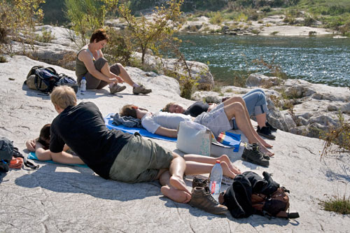 Für unsere Mittagspause müssen wir einen kleinen Pril durchwaten und am Strand weht ein kräftiger Wind, so dass wir nach knapp einer Stunde wieder aufbrechen.