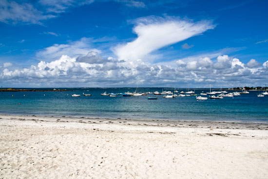 In Combrit schauen wir uns die interessante Kirche St. Tugdual aus dem 16. Jh. an, die mit seltenen Holzschnitzereien an den Deckenbalken und zwei (etwas missglückten) romanischen Chorbögen punkten kann.