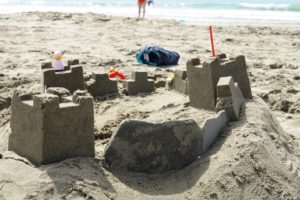 Sie rennen am Wasser entlang, suchen Muscheln und bauen mit Mama und Papa eine große Sandburg.