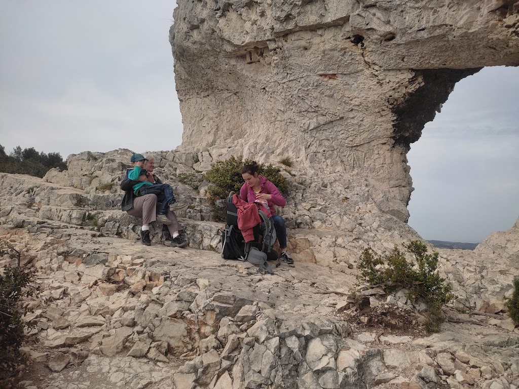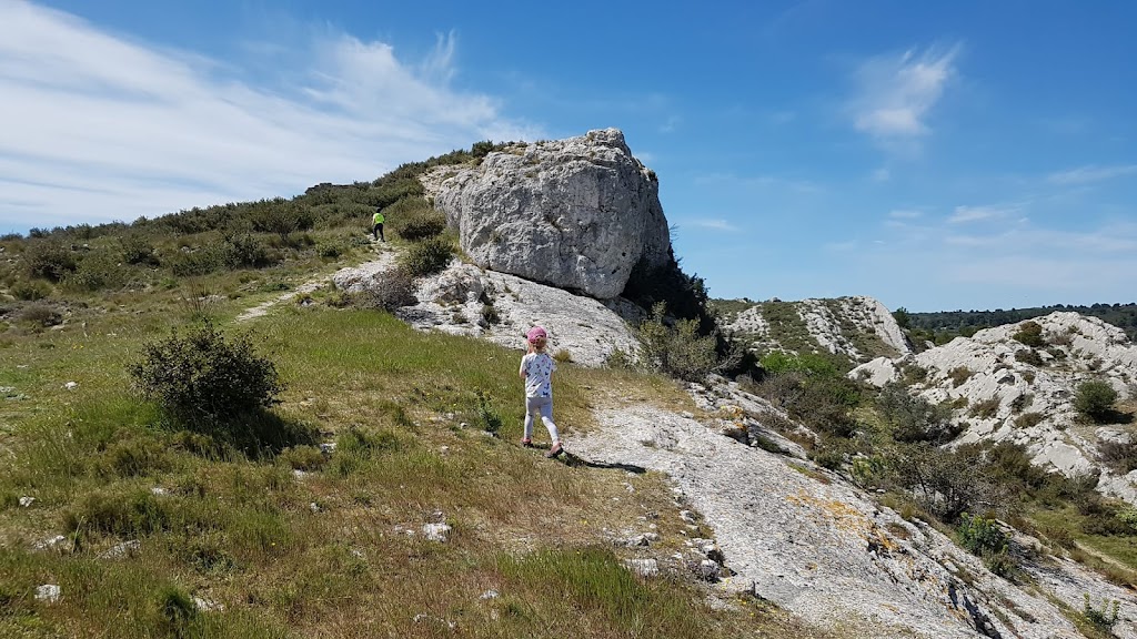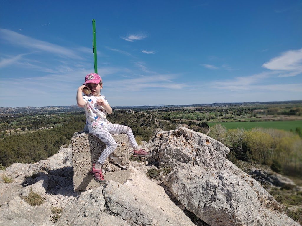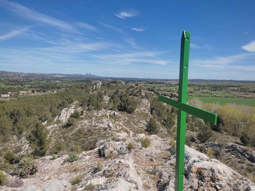 Gegen 13:30 Uhr fahren wir alle zusammen mit Davids Auto, das er zum Großraumtaxi umgebaut hat, nach Maussane zu den Tours de Castillon und machen die „traditionelle“ Erster-Sonntag-Wanderung zum Gipfelkreuz.