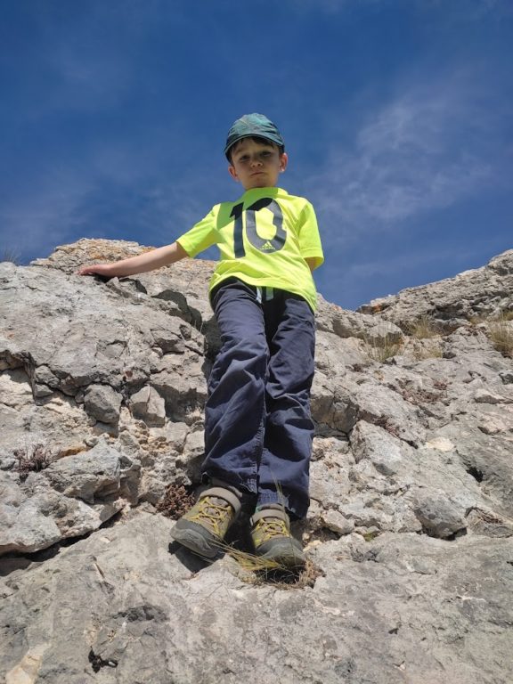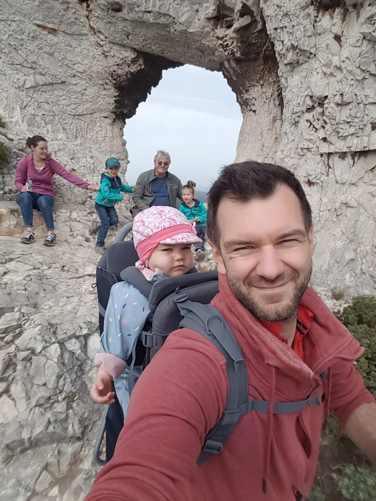 Ira in der Trage schläft nicht ein und wird zunehmend unzufriedener. Sie will auch nicht immer nur in der Trage bleiben, sondern die Gegend selbst erkunden – etwas schwierig bei all dem Geröll.