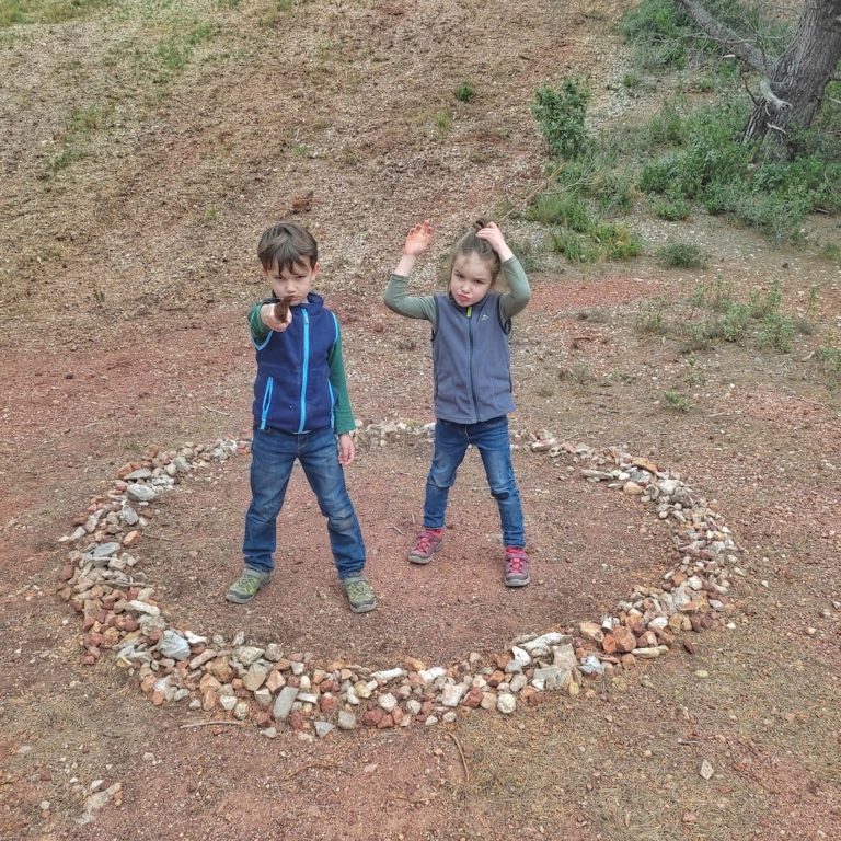 Wir sammeln Schnecken und Kräuter und spielen „Ich seh etwas, was du nicht siehst“.
