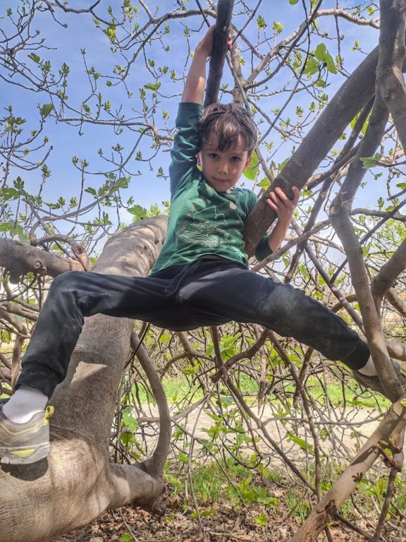 Die Kinder sind zwar müde, zu Hause geht es aber dennoch wieder an den Pool, und auf den Baum. Ira will nur noch an der Hand laufen.