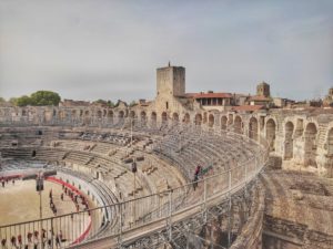 Nach dem Frühstück fahren wir nach Arles und parken im Parkhaus hinter dem römischen Theater.
