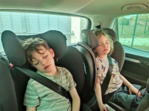 Im Auto schlafen Mio und Ava ein, scheint anstrengend zu sein.
