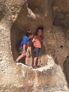 Es ist bedeckt und relativ kühl. Deshalb geht’s heute nicht ans Meer, sondern vormittags zu den zwei Löchern im Fels.