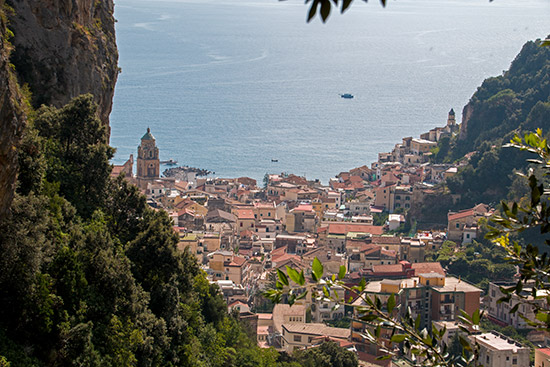 Gemütlich fahren wir nah an der Steilküste entlang, halten an ein paar Grotten, hören uns Geschichten zu jeder Madonna unterwegs an, passieren die kleine Insel Scoglio Isca und das Fischerdorf Nerano und fahren an der Punta Campanello hinüber nach Capri.