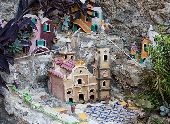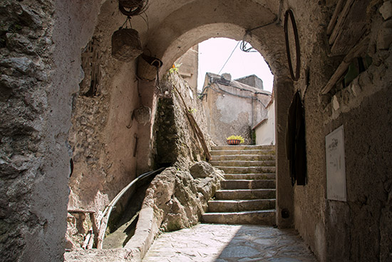 Wir laufen über eine Treppenweg hinauf nach Capri-Stadt, wo uns dutzende Bedienstete in ihre Restaurants und Cafes locken wollen. Hier herrscht Betrieb wie auf der Kirmes. Unzählige Besuchergruppen mit irgendeinem Anführer mit buntem Fähnchen schieben sich an uns vorbei oder rotten sich zusammen. Wir fliehen und wandern durch schmale Gassen vorbei an schönen Häusern und gepflegten Gärten hinauf zur Villa Jovis, den Ruinen des Kaiserpalastes/Sommersitzes von Tiberius. Punkt 13 Uhr sind wir oben, ab 13 Uhr ist allerdings auch geschlossen – jeden Tag, was aber nirgendwo steht und stand.