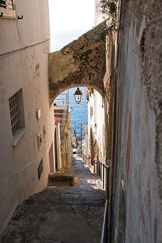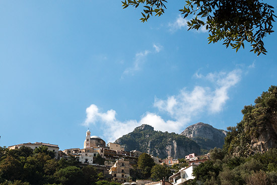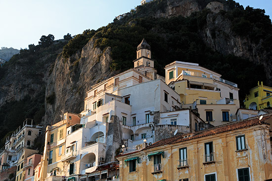 Die Sonne geht langsam unter als wir uns Positano nähern und vom Wasser aus wird besonders deutlich, was Steinbeck mit „senkrechter Stadt“ meinte.