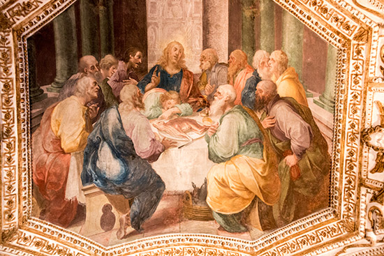 Über einen ungewohnt abenteuerlichen Wanderweg geht es hinüber zur Villa Fersen, die wir uns aber nicht anschauen, sehr ungepflegt und unspektakulär. Wir gehen zurück und schauen kurz in die schlichte Kirche San Michele la Croce (aussen 220V-Leitungen mit offenen unisolierten Lüsterklemmen, an denen ungesichert die komplette Kirchenaussenbeleuchtung und Lampionketten hängen).