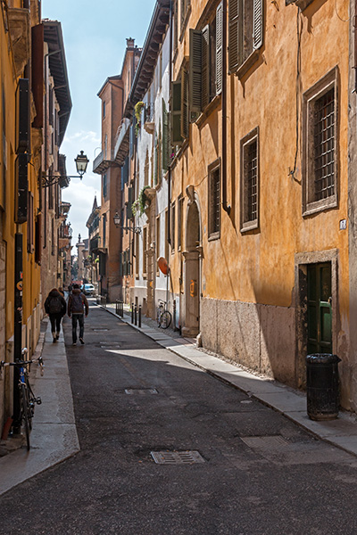 Wir bummeln zurück durch die Via G. Mazzini am Amphitheater vorbei und über den Corto Porta Nuova zum Park an den Bastionsmauerresten gegenüber dem Busbahnhof. Leider gibt es hier überhaupt keine Bank.