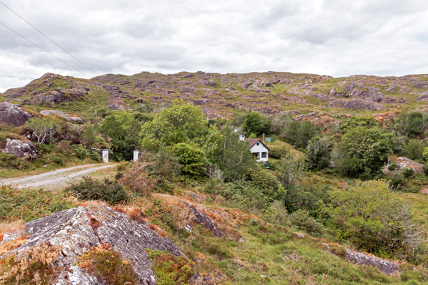 Nach dem Mittagessen wollen wir Hans besuchen, der in der Nähe von Glengarriff ein Haus hat. Über 30 Minuten lang in telefonischem Direktkontakt suchen wir in der Einsamkeit die Zufahrt zu seinem Haus. Hans pickt uns zum Glück unterwegs auf und fährt mit seinem Auto voraus.