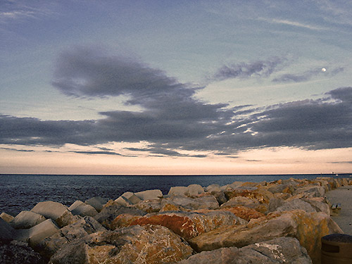 An unserem Strand nehmen wir eine weitere Überdosis Sonne, machen uns einen Kohlrabi-Apfel-Salat und fahren nach dem Kaffee mit den Fahrrädern Richtung Hafen (der Capitain meint es wird morgen wieder gut). Die Promenade ist gut besucht, überhaupt genießen alle Einheimischen die Sonne und springen einem vors Fahrrad (ja, wir sind auf dem Radweg).