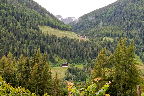 Vorbei an den Urlärchen wandern wir weiter über den Höfeweg nach St. Nikolaus zurück. Schade, dass das Wetter so trüb ist – mit Sonne hat es sehr viel mehr Spaß gemacht.